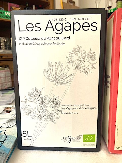 35%,Grenache, 25% Syrah, 25% Marselan, 15% Mourvèdre, Carignan und Caladoc, Rotwein, 5L, alc 14% vol., mit 20mg/L bei der Abfüllung geschwefelt