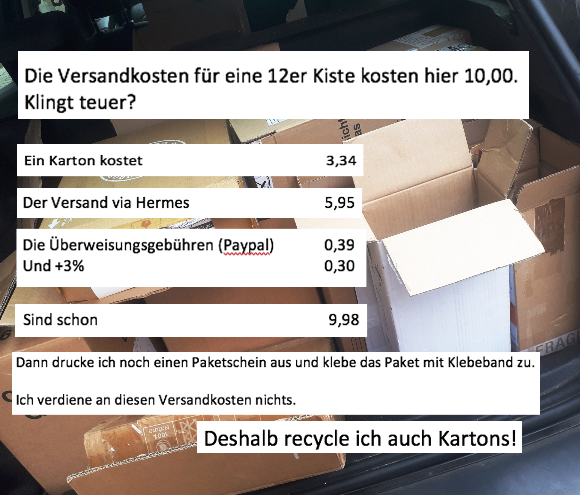 6er und 12er Karton 10,00 € ( inkl. gestzl MwST). Lieferungen ins Ausland: